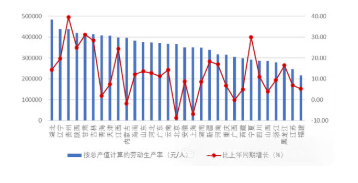 圖 5 2025 年上半年各地區(qū)建筑業(yè)勞動(dòng)生產(chǎn)率及其增長情況